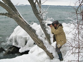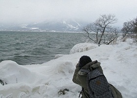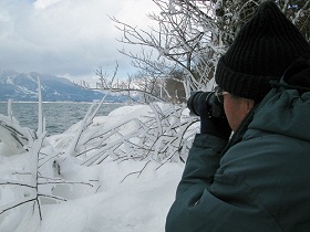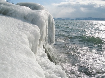 <会津磐梯山を背景に天神しぶき凍り廻廊> ■会津磐梯山の麓に広がる高原の町猪苗代。冬はウインタースポーツ。春は新緑トレック。夏は登山に湖水浴。秋は紅葉と、四季折々に、アウトドアライフが満喫できるリゾート地でもある。紺碧の湖と称される猪苗代湖。標高は約514メートル。奥羽山脈と越後山脈の狭間にあり、天空の湖として人気がある。特に、この地方ならではの美景があります。 猪苗代湖畔から見る風景には、万年雪で覆われている飯豊山系。 風の風車高。氷点下10度以下で吹き荒れる湖面の風は、湖畔の樹木を瞬く間に凍らせて自然の造形美をもたらす。その自然の創像は、日々移り変わる情景がカメラファンに親しまれている。 「天神しぶき歩行ルート」 ■一般的に知られている天神浜のしぶき氷。R49号線から、天神浜を経由して小平潟天満宮駐車場に向かうコース。 R49線長瀬川に近い小平潟地区を抜けて、天満宮に至る二つのコースがある。 駐車場からは、約2キロほどの平坦道程だが、なにせ除雪無しの圧雪状態なのだ。まして歩行幅は70㎝ぐらいしかないので、前方からの帰り人との擦れ違いはできない。この状態での歩行工程時間は、片道約45分を要する。 ■天神浜までの道程は遠くても、その途中には素晴らしい光景も広がっています。 昨夜あたり歩いたかのような動物の足跡。大きなものは狐かも知れない。可愛らしい小さな足跡を発見。これは良く見られるテンだとおもう。 黄色い花が咲くアサザの沼雪面には、大小多くの動物達が入り荒れた紋様が面白い。 山道の頭上からは、これまた自然のBGMが鳴り響き、遠来からのしぶき氷ツアーの方々の心を弾ませてくれます。 美声はやっぱり、コガラかな。チトうるさい?のは、シジュウカラ! こんな情景を背に受けての雪上歩きは、寒さも吹き飛ばすほど楽しいものですね。 「川桁山の美景」■川桁山は、猪苗代町の東方に位置し磐越西線川桁駅から北東の方向に位置する。標高は、1413.2m三等三角点峰。登山コースは、長瀬小学校内野地区からと観音寺川林道からの2つのコースがある。 冬場のトレックは厳しいので、GWあたりからの予定をお勧めします。コース内容は、カラマツ林の中を千石川を左に見て林道を進と、30分ほどで林道と分かれて左の登山道に入る。三十八転坂と呼ばれる急坂を登るのだが、ちょっときつい。約20分ほどでブナ林の尾根にでる。ここからは、緩やかな感じだが1192mピークまでは急坂が続く。1192mピークから尾根づたいにアップダウンをしながら進む。見事なブナが目に付く。勾配がきつくなり最後の急坂を登り切ると、三等三角点のある川桁山に到着。 山頂からは磐梯山が目の前に、眼下には猪苗代湖が広がる。東側に進むと吾妻山、安達太良山が見えてくる。会津磐梯山に比べると、混雑はすくない。帰路は、登ってきた道を戻ることになるが、三十八転坂は小雨でも滑りやすいので注意すること。 ※お問い合わせはこちらまで。