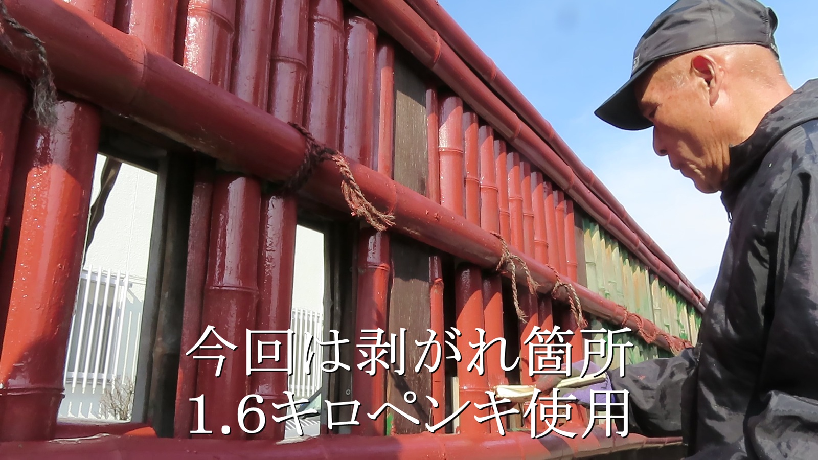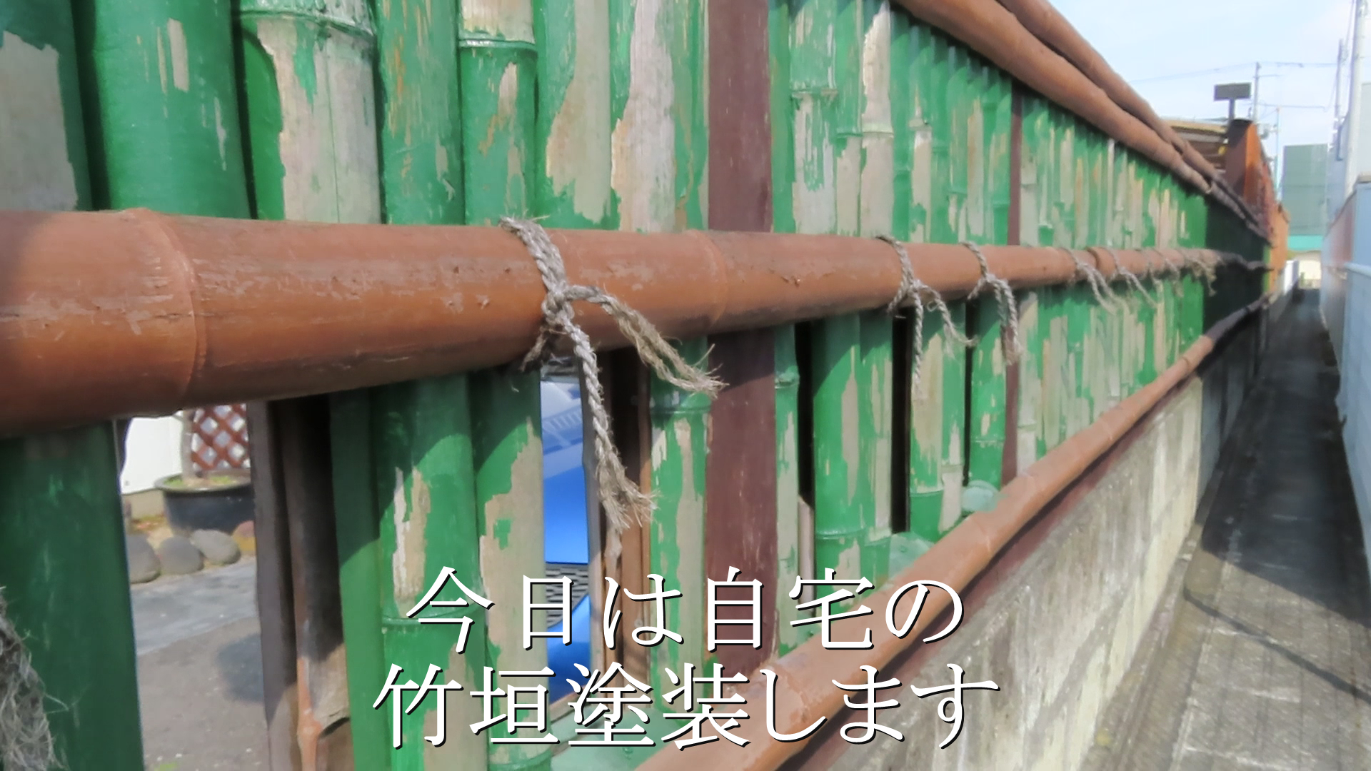 古い竹塀塗装